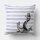 Original watercolor painted design by Sandra Gale, featuring a bold metal anchor with a large rope wrapped around it. Horizontal painted translucent stripes make a watery nautical background for this summer design. Great for beach bungalows and shore homes!