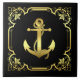 Nautical ship's anchor silhouette/gold/black ceramic tile