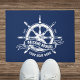 Nautical Ship's Wheel Welcome Aboard Navy Blue Doormat