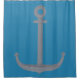 Nautical Silver Grey Anchor on Blue Shower Curtain