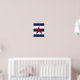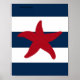 This is a terrific nautical print to go with your decor. It features a red starfish on a navy blue and white striped background.