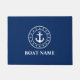 Nautical Anchor Stars Rope Navy Blue and White Your Boat Name Door Mat