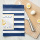These nautical inspired kitchen towels have blue and white stripes with yellow accents and feature the quote LIFE IS BETTER ON THE BOAT. Personalise with the name of your boat