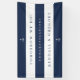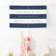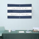 Welcome guests to your nautical themed, summer or coastal rehearsal dinner with this eyecatching navy blue and white striped banner. Personalize with three lines of custom text accented with two white anchor illustrations. Shown with "tomorrow we do! Congratulations [name] and [name]."