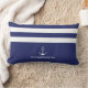 Nautical Stripes Custom Boat Name white anchor navy blue Lumbar Pillow.