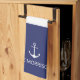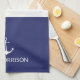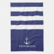 Nautical Stripes Custom Boat Name white anchor navy blue kitchen towel.