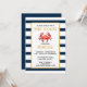 Invite your friends and family to a fun, nautical themed baby shower with this modern navy and gold design featuring a watercolor crab and personalised text.