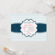 A nautical-theme invitation with a light blue and white stripe background, a navy blue rope-edged centre and a decorative panel that holds your party details. Perfect for showers, birthdays, anniversaries and more. (<a href='http://www.freepik.com/free-vector/nautical-striped-background-with-several-marine-animals_984466.htm'>Designed by Freepik</a>). <br/><br/>The card is easy to customise with your wording, font, font colour and choice of six paper types.<br/><br/>Not exactly what you're looking for? All our products can be custom designed to meet your needs at no extra charge.<br/><br/>Simply contact us at askcottonlamb@gmail.com<br/><br/>Coordinating products available: