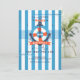 A sporty, nautical design with light blue and white stripes featuring an anchor and a life preserver. <a href='http://www.freepik.com/free-vector/anchor-with-life-preserver-background_860673.htm'>Designed by Freepik</a>. The card is easy to customise with your wording, font, font colour, paper shape options and choice of six paper types.<br/><br/>Not exactly what you're looking for? All our products can be custom designed to meet your needs at no extra charge.<br/><br/>Simply contact us at heartfelthelper@gmail.com<br/><br/>Coordinating products available: Just ask us!