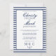 This wedding nautical themed invitation is inspired by classic anchors and stripes.