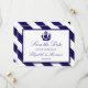 These save the date cards are perfect for any couple planning a romantic marriage by the sea. The design features a whimsical navy blue ship motif on a nautical navy and white striped background. The simple design can be personalized to suit your special event and will be the perfect announcement for any nautical beach themed party, including; bridal showers, engagements, wedding showers, birthday parties and much, much more.