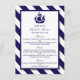 The design features a whimsical navy blue ship motif on a nautical navy and white striped background.