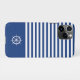Nautical Stripes+Ships Wheel Blue+White iPhone Case