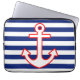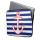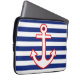 Nautical Style Anchor Icon on Stripes Laptop Sleeve