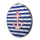 A nautical anchor design pattern decor on blue stripes. A modern nautical gift sure to make an impression on, or off the boat.
