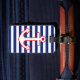 A nautical anchor design pattern decor on blue stripes. A modern nautical gift sure to make an impression on, or off the boat.