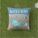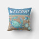 Nautical Teal Blue Crab Starfish Sand Dollar Rope Cushion