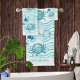 Nautical Teal Blue Crab Sand Dollar and Starfish Towel Set. Blue and White Custom design, Brighten up any bathroom, Perfect for kids.
