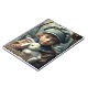 Blue aesthetic spiral notebook, featuring a cute little boy holding his toy bunny in a nautical theme illustration and custom text.