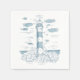 Nautical Theme Paper Napkin. Toile de jouy style hand drawn lighthouse.