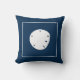 Nautical themed throw pillow with white sand dollar on navy blue background See all the coordinating pillow designs at Sandy Feet Studios.