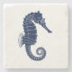 A trivet with a unique nautical theme. It features a seahorses centred in the middle in a vibrant navy and white colour scheme.