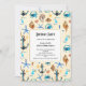 A cool birthday party invitation design. A summery tropical themed pattern filled with items from the beach. Crabs, seashells, starfish and anchors.