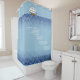 Shower curtain with traditional song "The Big Ship Sails on The Ally-Ally-Oh". Watery shades of blue form a background of this nautical-themed shower curtain and a sailing ships sail across the top of the curtain.
