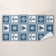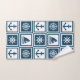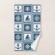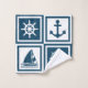 Nautical themed design with sailing wheel, sailing boat,compass and anchor decoration in white and blue striped squares