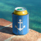 Nautical themed design with anchor decoration on striped blue and grey wooden background. Please note this is not made of wood, it is a wood graphic print.