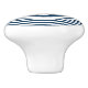 Nautical themed design with nautical symbols (anchor, sailing boat, sailing wheel, compass) decoration on white and navy blue striped background.