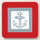 Nautical themed design with anchor decoration in striped squares on red background