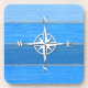 Nautical themed design with compass decoration on striped blue and grey wooden background. Please note this is not made of wood, it is a wood graphic print.
