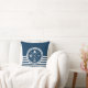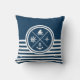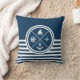 Nautical themed design with nautical symbols (anchor, sailing boat, sailing wheel, compass) decoration on white and navy blue striped background.