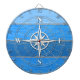 Nautical themed design with compass decoration on striped blue and grey wooden background. Please note this is not made of wood, it is a wood graphic print.