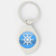 Nautical themed design with sailing wheel decoration on striped blue and grey wooden background. Please note this is not made of wood, it is a wood graphic print.
