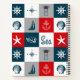Nautical themed design with navy and aquatic decoration in seamless white, red, blue and grey squares