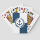 Nautical themed design with anchor and laurel wreath decoration over blue and white geometric background