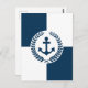 Nautical themed design with anchor and laurel wreath decoration over blue and white geometric background