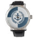 Nautical themed design with anchor and laurel wreath decoration over blue and white geometric background