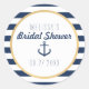 Bridal Shower Nautical themed Favour Stickers with an anchor accent - white and blue striped background with faux gold border - Perfect for Bridal Showers, engagements, weddings and other events!