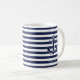 Nautical themed gifts - personalised white and navy blue classic mugs with navy blue anchor on stripes and customisable text where you can add your name or any other text. Beautiful gifts for birthday, Christmas or any other day...