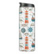 Red, teal, grey nautical graphics on white background, seamless repeat pattern