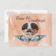 Nautical-themed Seas & Greetings Holiday Photo Postcard. Featuring a heart-shaped photo. Blue and Coral peach with Seashells