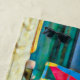 This beach towel features an image of three sail boats on the beach. It includes the colours blue, teal, aqua, pink, sand and yellow.