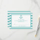 Nautical Turquoise Stripe Anchor Wedding RSVP Card