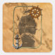 Vintage sailing ship relief on a vintage map of the Bahamas background with a ship's wheel and anchor as decoration and trimmed with rope.