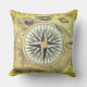 Throw pillow with image of vintage map and compass on front and texture image of burlap on the back.