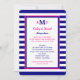 This nautical theme vow renewal invitation features navy blue, hot pink and white. Your monogram appears at the top in navy and pink with all your vow renewal details below on a white background. Surrounding the white is navy blue and hot pink with a navy and white stripe border. This is a great renewal of marriage vows invite for a nautical themed vow renewal, if you love navy blue and hot pink! Copyright henishouseofpaper