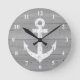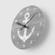 Nautical wall clock | boat anchor and wood panels. Grey and white design with wooden boards and weather navy ship anchor. Maritime gift idea. Beach theme room decor / house decoration.